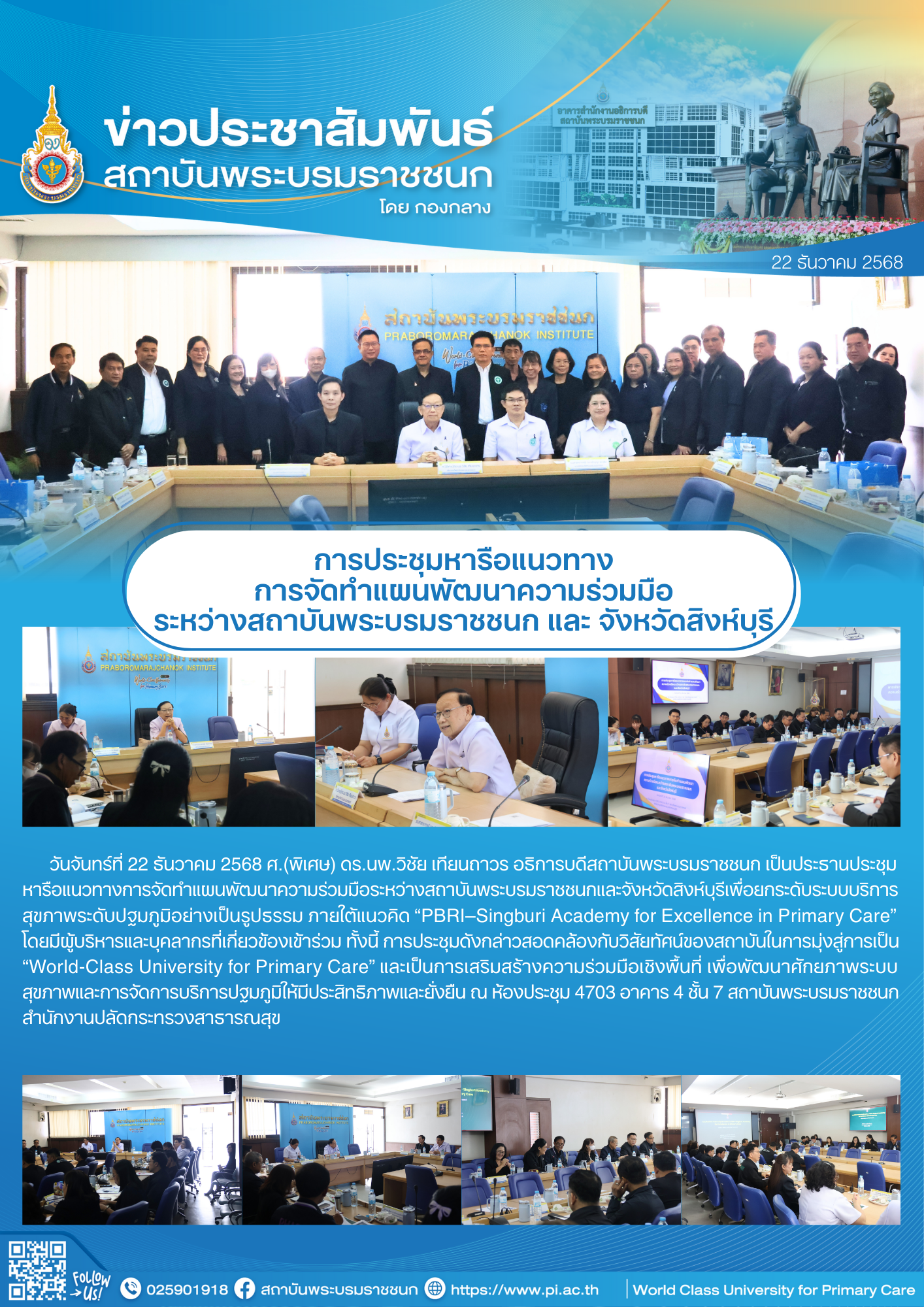 การประชุมหารือแนวทาง การจัดทำแผนพัฒนาความร่วมมือ ระหว่างสถาบันพระบรมราชชนก และ จังหวัดสิงห์บุรี