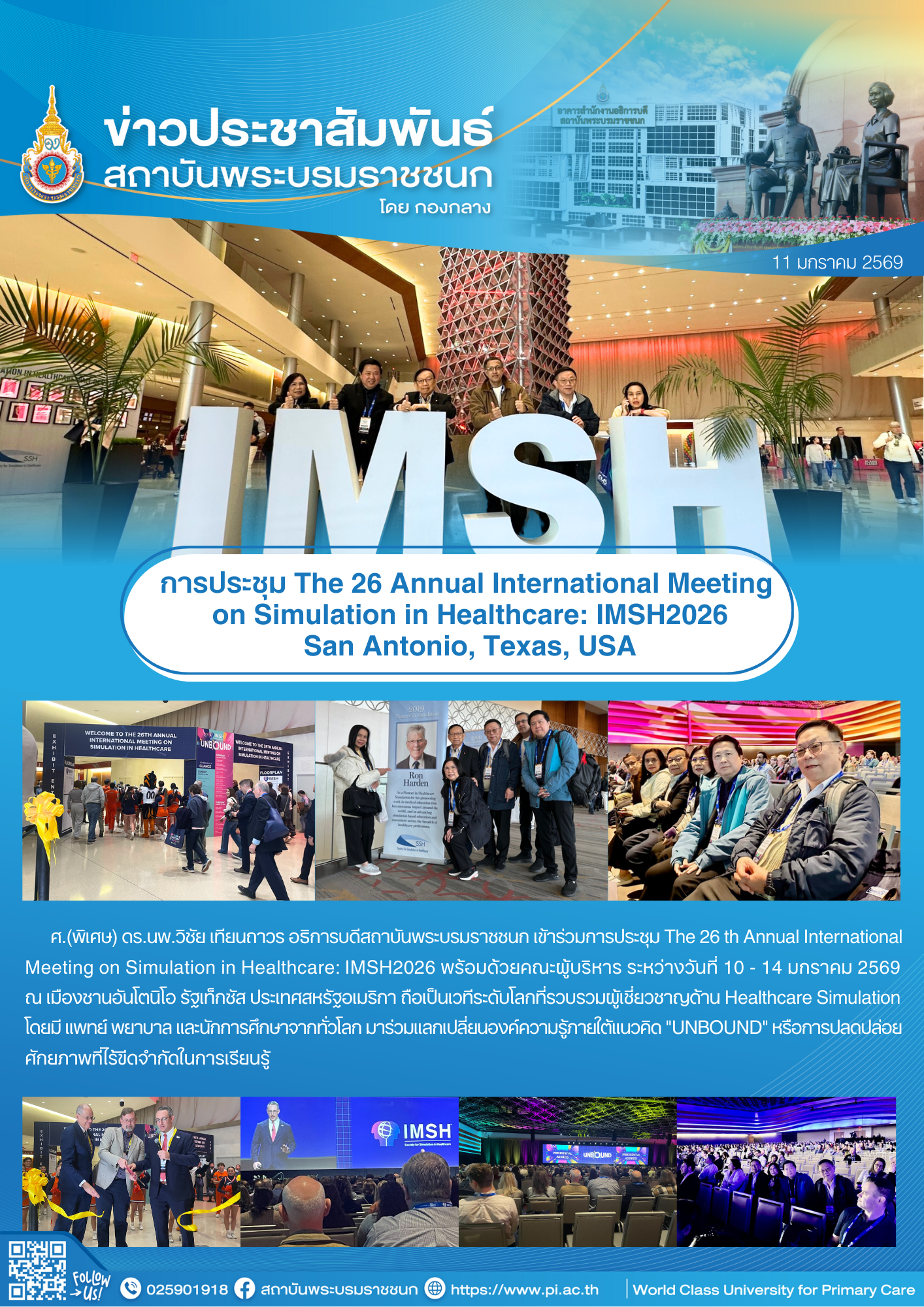 การประชุม The 26 Annual International Meeting on Simulation in Healthcare: IMSH2026 San Antonio, Texas, USA