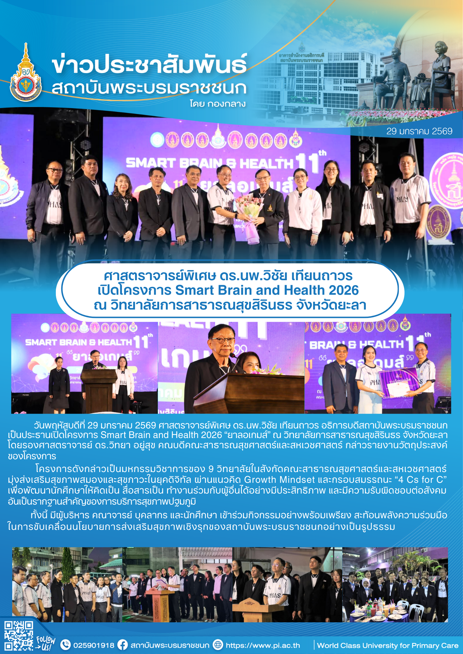 ศาสตราจารย์พิเศษ ดร.นพ.วิชัย เทียนถาวร เปิดโครงการ Smart Brain and Health 2026 ณ วิทยาลัยการสาธารณสุขสิรินธร จังหวัดยะลา