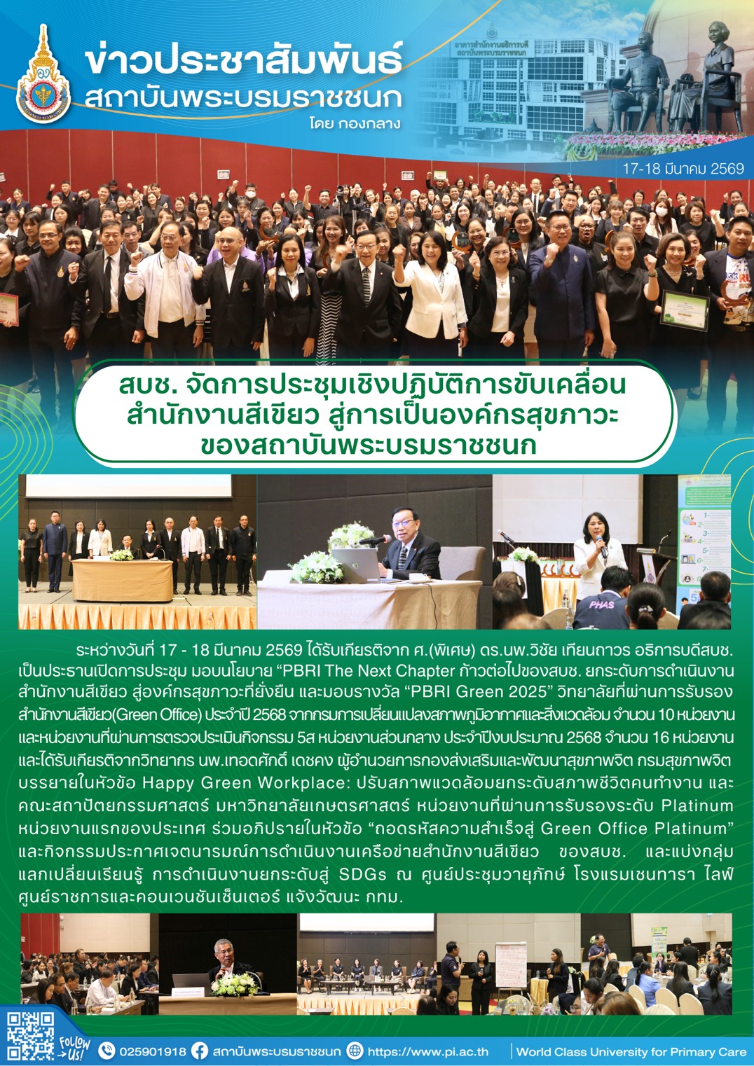 การประชุมเชิงปฏิบัติการขับเคลื่อนสำนักงานสีเขียว (Green Office) สู่การเป็นองค์กรสุขภาวะ ของสถาบันพระบรมราชชนก ประจำปีงบประมาณ 2569